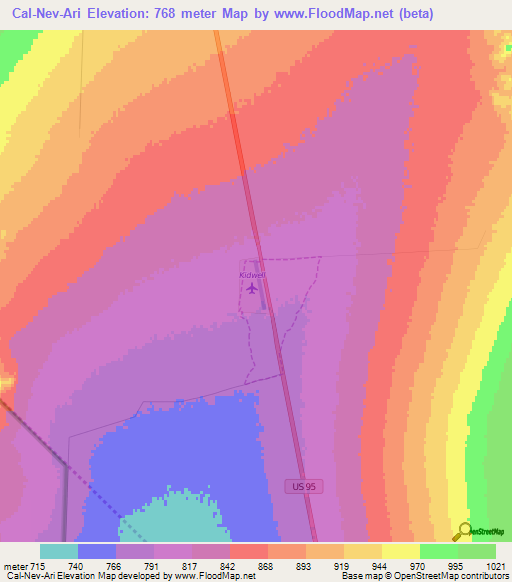 Elevation of CalNevAri,US Elevation Map, Topography, Contour